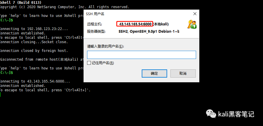 即映射效果为:43.143.165.54:6000 == 192.168.123.23:22