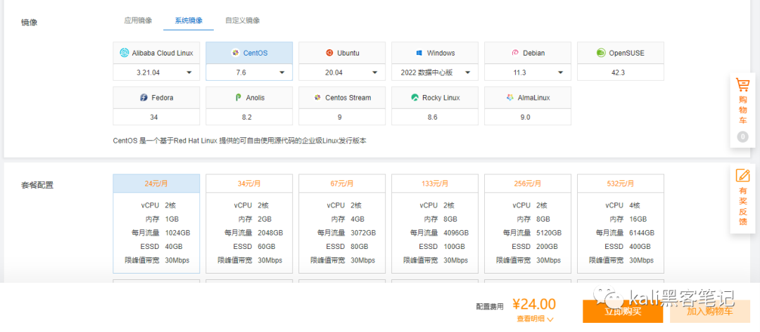 如果你有公网服务器,直接用就行了。没有的话需要购买服务器。这里表哥建议直接购买阿里或者腾讯的轻量应用服务器。相对来说比较便宜(阿里最低价格(24/月) 腾讯云(32/月))