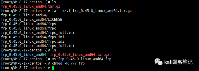 tar -xzvf frp_0.45.0_linux_amd64.tar.gz