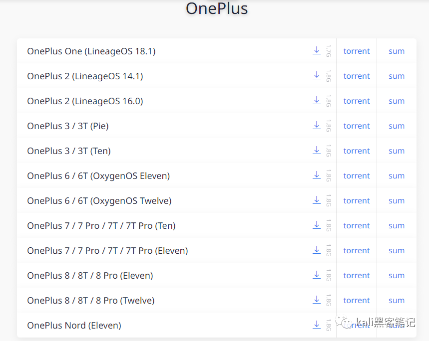 没错,kali是可以手机安装的,但是由于支持的设备较少。安装的话我们只需下载镜像,然后给手机刷机即可。如常见支持的手机。
