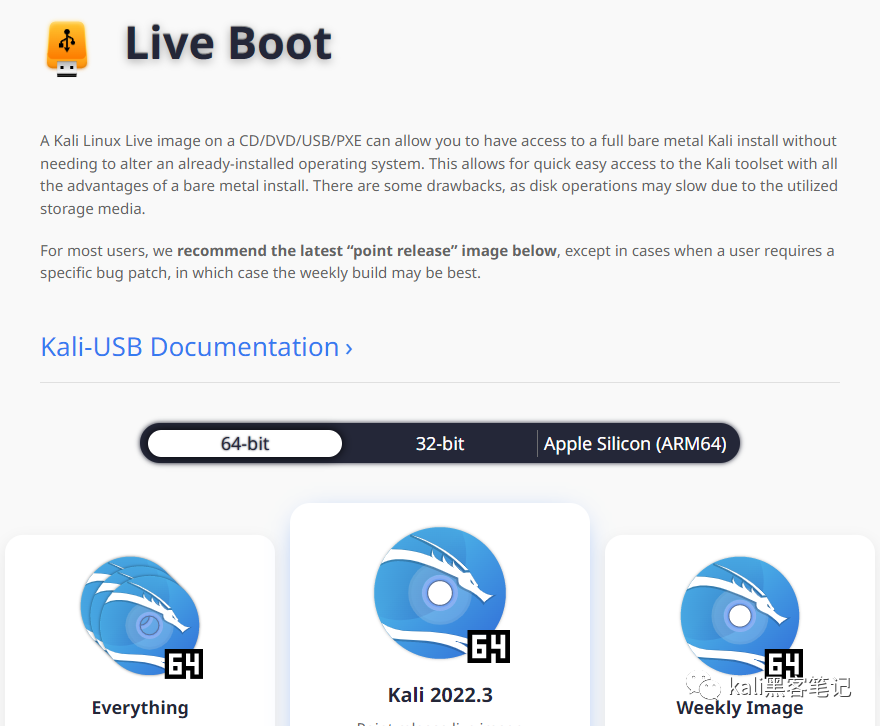 我们首先在kali的官网下载下载U盘版的镜像文件。