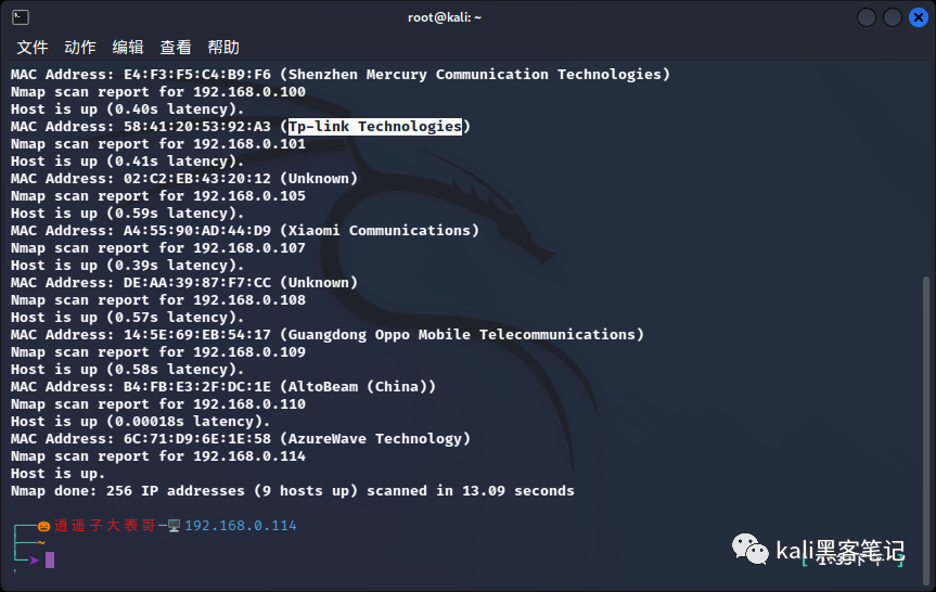 如,这里我们扫描到了设备为192.168.0.100