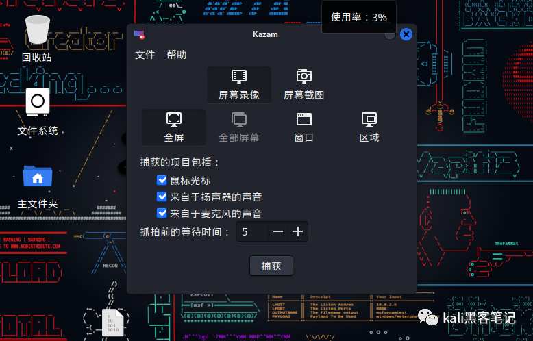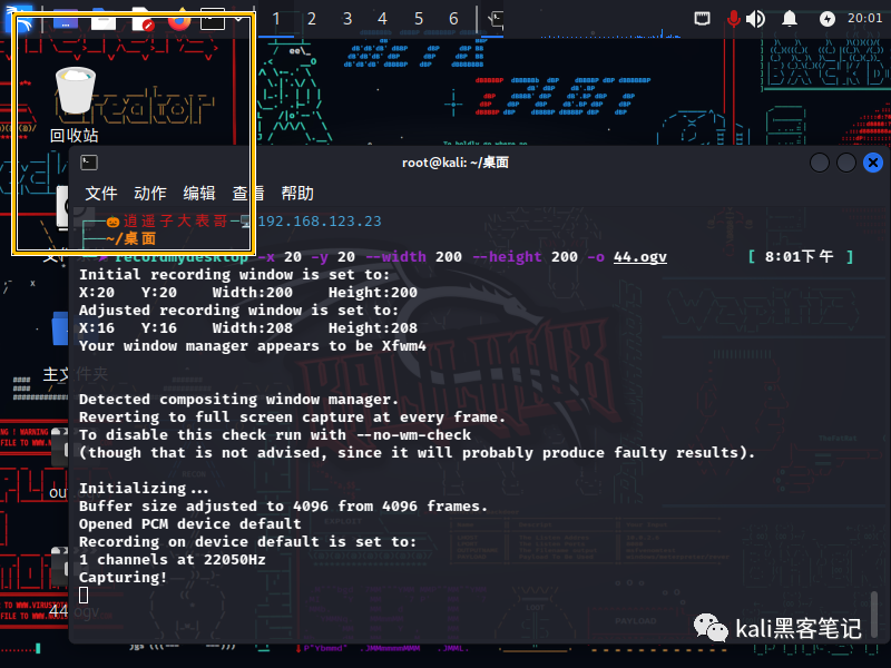 本文我们来介绍下在kali中常用的几款录屏工具。需要注意的是在kali中,这些工具已经默认安装好了。如果是其他系统我们可以利用apt命令进行安装。