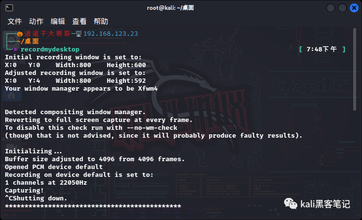 。它便开始录制,按Ctrl+C