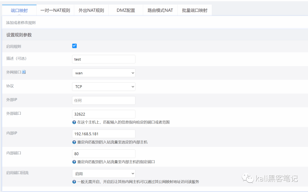我想将kali的80端口进行映射