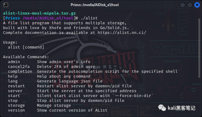 注意:由于路由器容量有限,建议将alist放到U盘或者硬盘中。