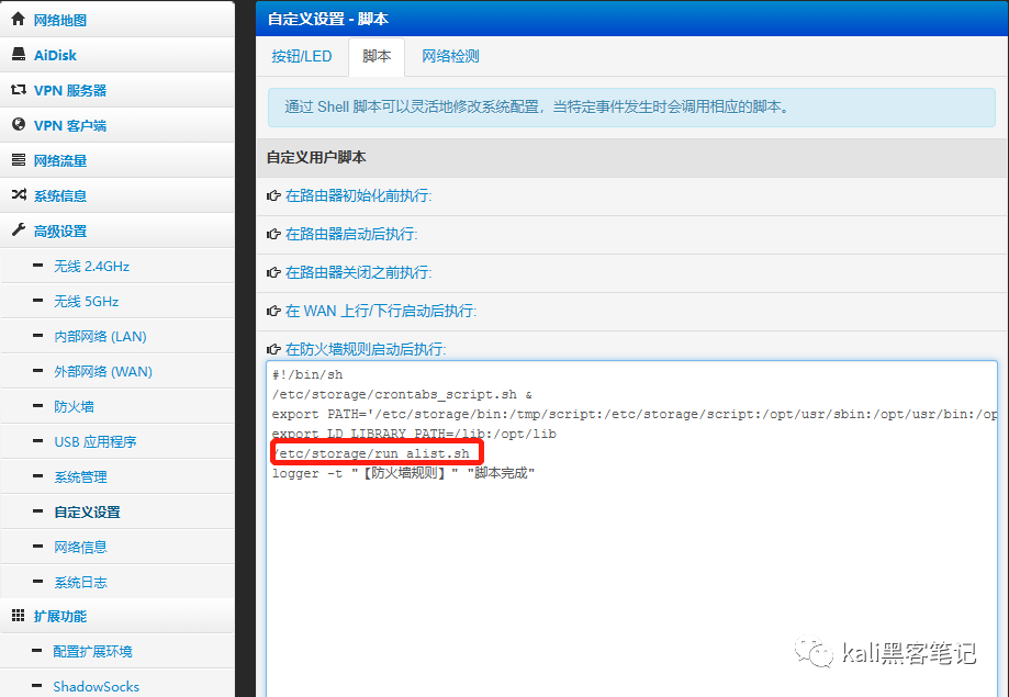 保存完成后,用xftp工具将脚本上传到/etc/storage/