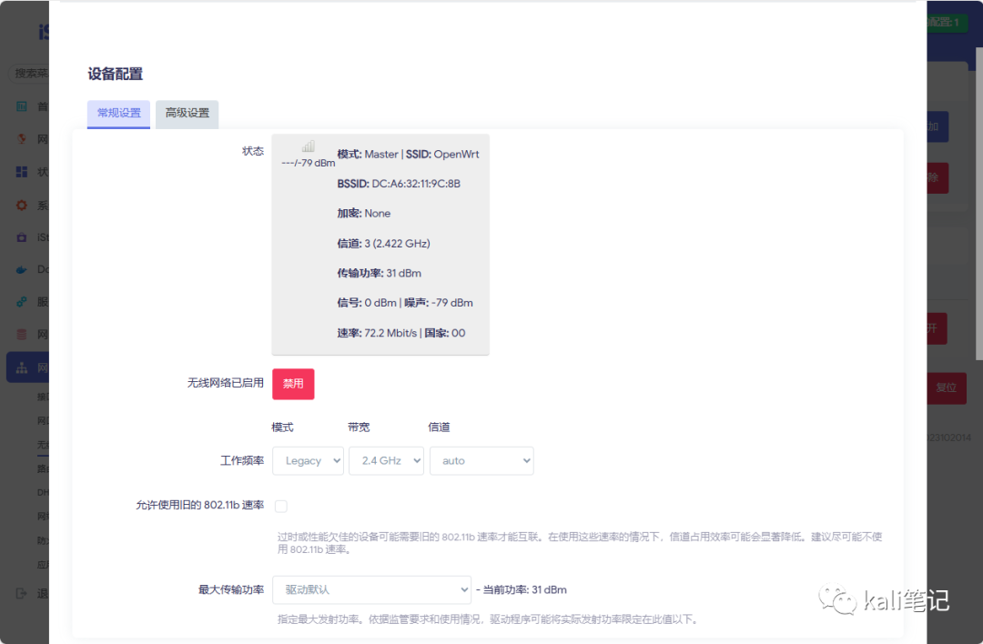 其实没有必要在旁路由中开启WiFi。主路由开启就行了!但是这里给大家说说怎样开启。点击网络— 无线