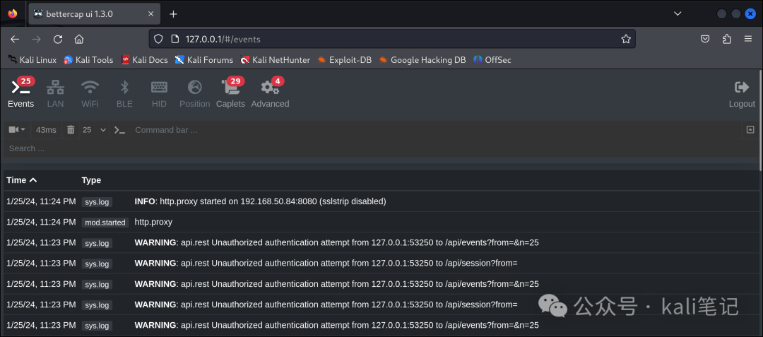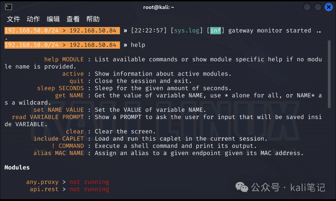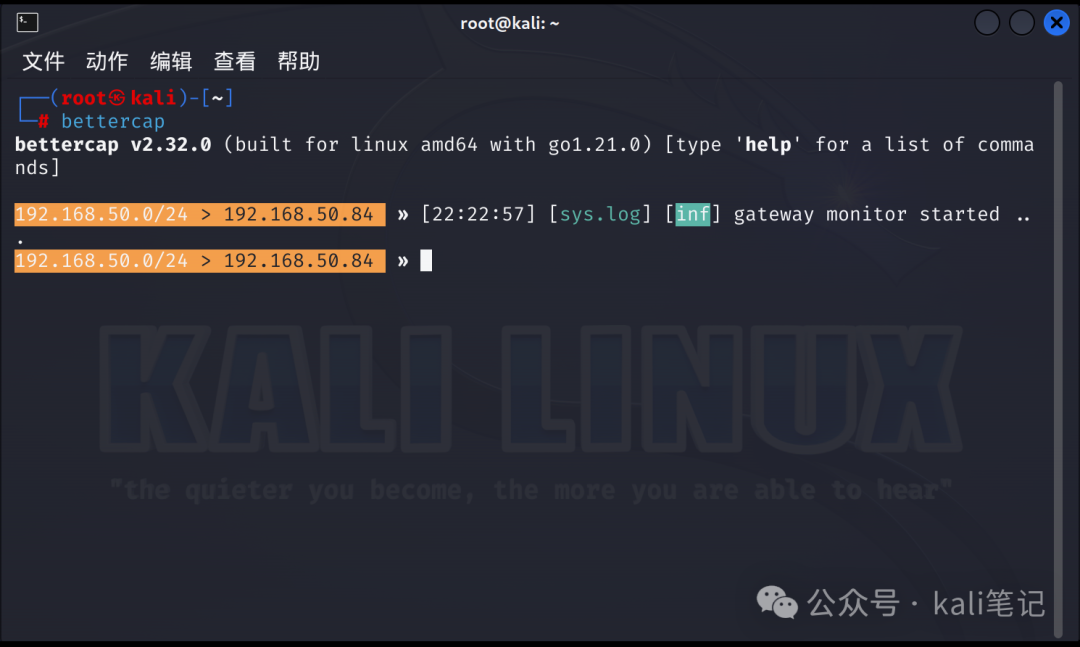 bettercap是一个用 Go 编写的强大、易于扩展和可移植的框架,旨在为安全研究人员、红队成员和逆向工程师提供易于使用的多合一解决方案,其中包含他们可能需要执行侦察和攻击WiFi网络、低功耗蓝牙设备、IPv4/IPv6网络。