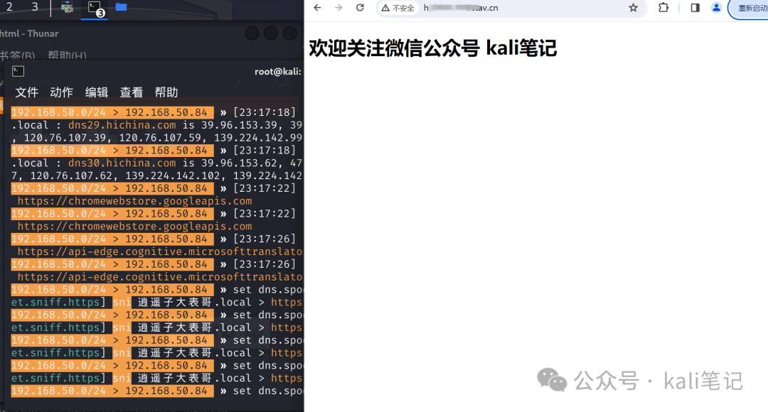目前仅在http站点测试成功,理论https也是可以的,估计是我姿势不对。配置参数如下 首先在kali的/var/www/html目录新建一个index.html文件。内容随意。配置完成后,启动kali自带的apache服务