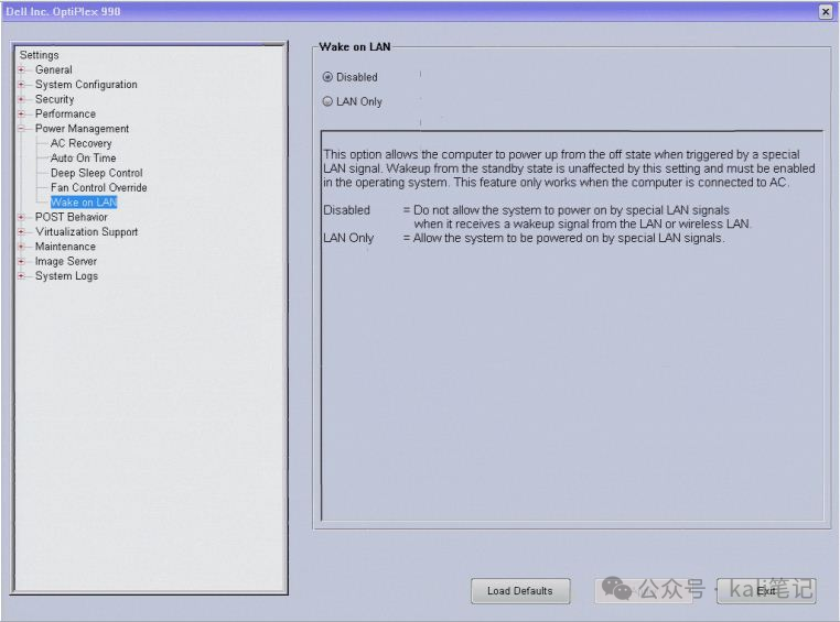 下的Wake on LAN