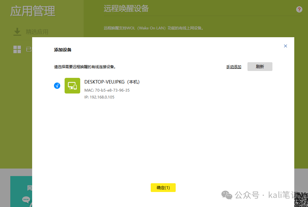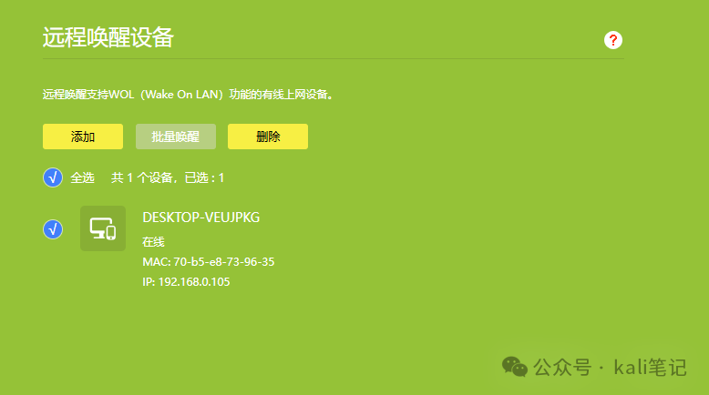 如果你的路由器支持网络唤醒,进入相关应用添加设备即可。