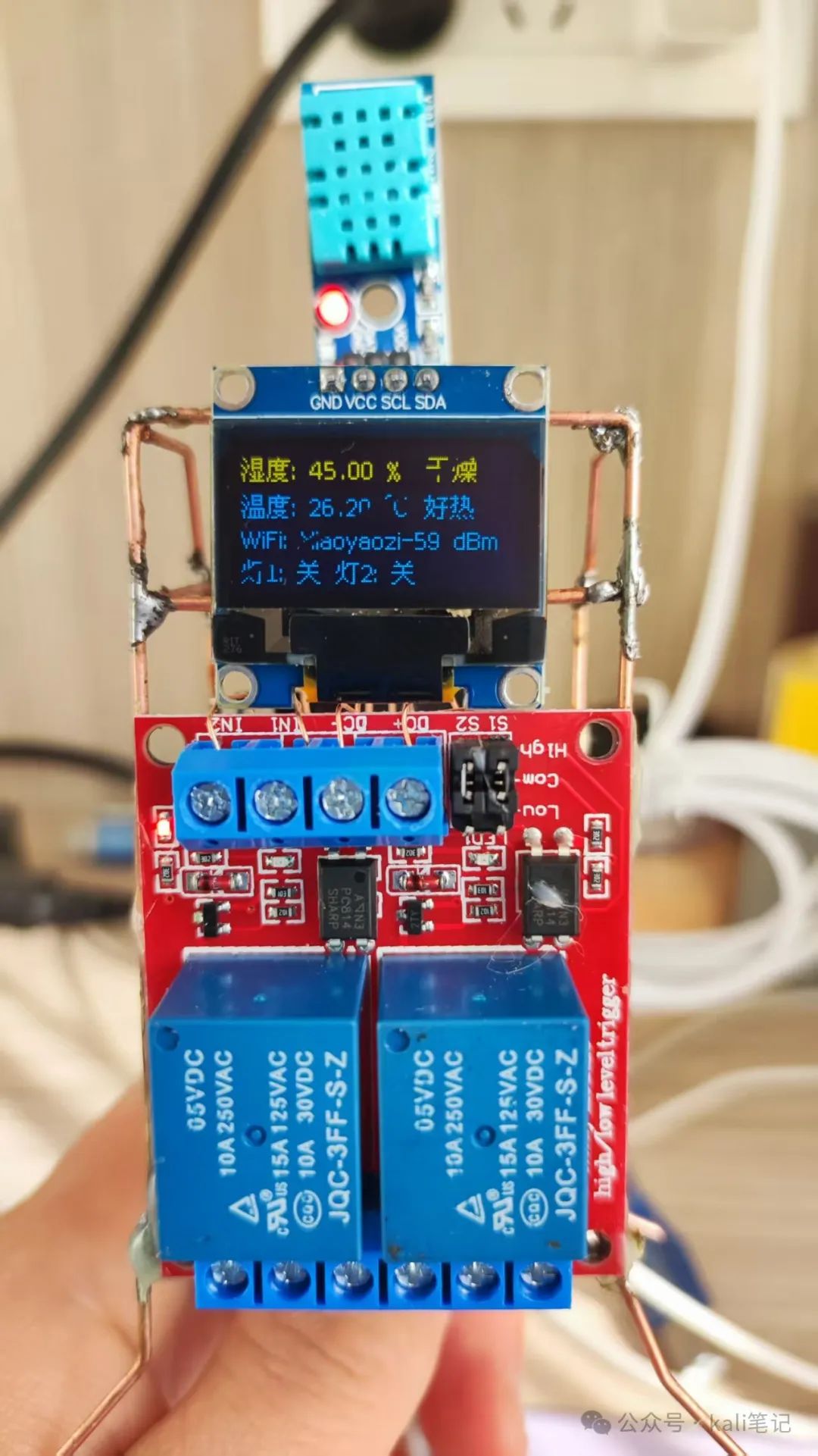 D5-->DHT11接口D6-->1号灯D6-->2号灯A0-->土壤传感器D1-->显示器SDAD2-->显示器SCL注意,本示例中,因没有添加土壤传感器,在代码中进行了注释。需要开启,去掉注释就行了。