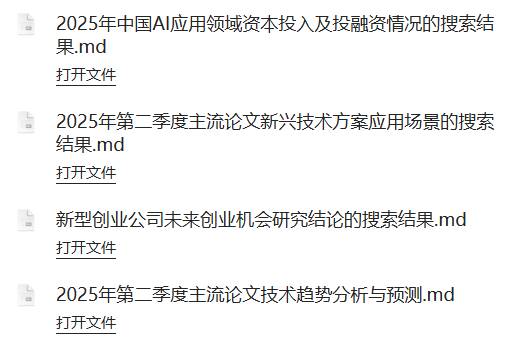 能看到 JoyAgent 输出的结果并非泛泛而谈,虽然不是非常明确的业务建议,但也足够支撑对外交流和讨论,同时,这些研究结果,JoyAgent 都会给出阶段性的 md 文档,方便用户整理采用: