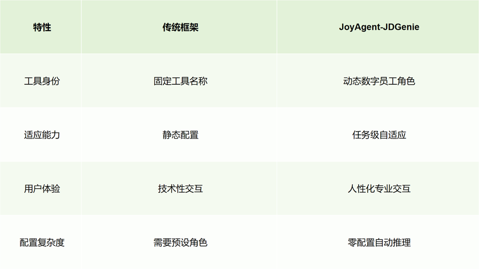 开发者也自发对 JoyAgent 的源码进行了解读,罗列了这种工具进化能力,与传统 Agent 框架的区别: