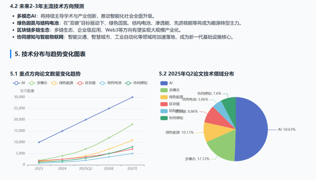 技术采用部分的研究太过宽泛,请结合最近一个季度主流论文情况,对技术趋势进行研判,预测未来将成为主流的技术方案或方向,并配合图表做解读。
