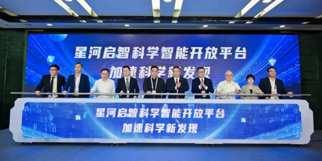 复旦大学校长金力,复旦大学附属中山医院心内科主任、上海心血管病研究所所长葛均波,上海市经济和信息化委员会副主任张宏韬,上海市科学技术委员会副主任屈炜,上海市教育委员会副主任赵震,中国电信上海公司党委委员、财务总监、总会计师王海建,中国联通上海分公司党委委员、副总经理刘彤,上海库帕思科技有限公司董事长山栋明,上海智能算力科技有限公司总经理孙跃,复旦大学特聘教授、上智院院长、无限光年创始人漆远,共同发布星河启智科学智能开放平台
