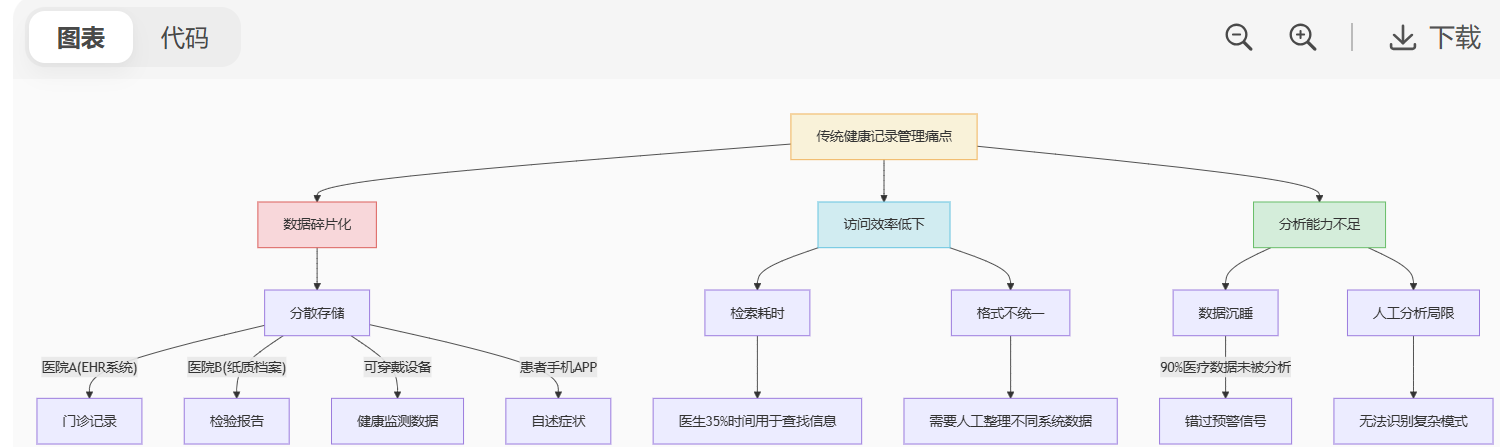 健康记录的数据正以惊人的速度增长——平均每个人产生80MB的影像和记录数据每年,而医院每天需要至少处理5TB以上的医疗信息。这种数据爆炸式增长带来了三大核心挑战: