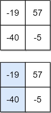 输入: matrix = [[-19,57],[-40,-5] ] 输出:-59 解释: 如图所示,为和最小的下降路径