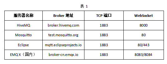 下表提供了可用的在线公共MQTT服务器,可根据需要自行切换。
