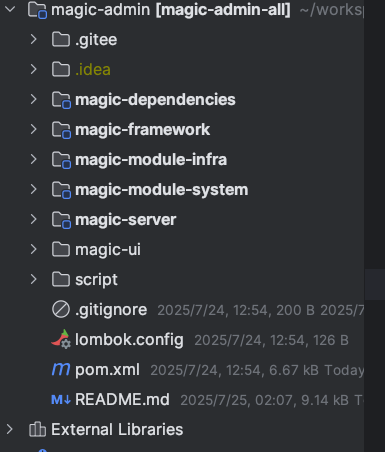 项目的名称:magic-admin , 保留了 RuoYi-Vue-Pro 的基础功能 ,同时在客户端管理、代码组织结构、 多租户管理这三个层面做了定制。