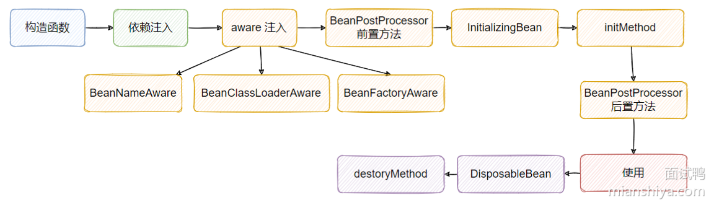 Bean 可以实现 BeanNameAware、BeanFactoryAware 等 Aware 接口,从而在初始化之前获取 Bean 的名称、BeanFactory、ApplicationContext 等容器资源。例如,ApplicationContextAware 接口允许 Bean 获取 ApplicationContext,以便进一步与 Spring 容器交互。