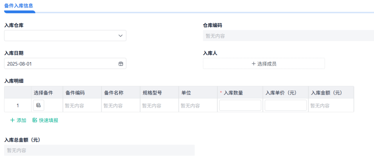 备件入库管理模块用于记录和管理备件的入库操作。它能够跟踪备件的来源、入库数量、入库时间等信息,确保库存准确。