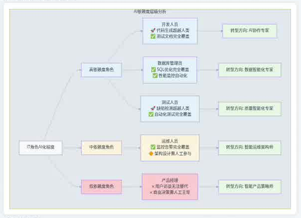 这个层级图展示了不同IT角色对AI工具的依赖程度和转型方向: