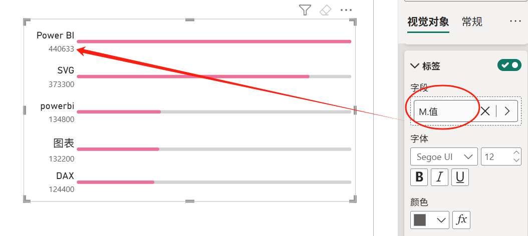 维度显示了,如何显示对应的值?把图像设置为右侧,并打开标签字段,得到: