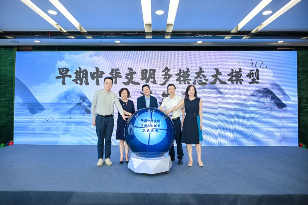 裘新、复旦大学文科资深教授、出土文献与古文字研究中心主任刘钊、复旦大学中国历史地理研究所教授、所长张晓虹、复旦大学历史学系教授高晞、复旦大学人工智能创新与产业研究院研究员、上海科学智能研究院 AI 科学家朱思语共同发布早期中华文明多模态大模型。