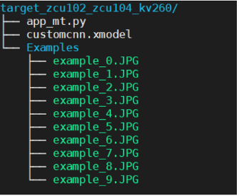 如果使用的是 Xilinx zcu102/zcu104/KV260 官方 Vitis AI 启动文件,则3 块板上的 DPU 配置都相同。可以在 3 个平台上运行相同的xmodel文件,主机上的所有步骤完成后,将以下文件复制到目标板上。共需要xmodel文件,主机程序,以及一些用来测试的图片。
