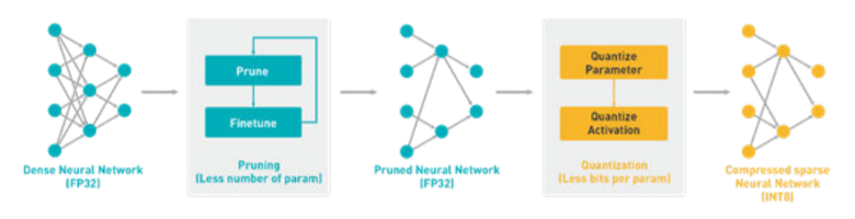 训练完Tensorflow2.0模型后,下一步是使用Vitis AI quantizer工具对模型进行量化。量化过程将 32 位浮点权重转换为 8 位整型 (INT8),定点模型需要更少的内存带宽,从而提供更快的速度和更高的运行效率。如果需要进一步优化计算量级,还可以使用Vitis AI提供的剪枝(pruning)工具。