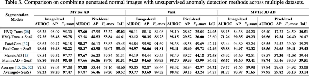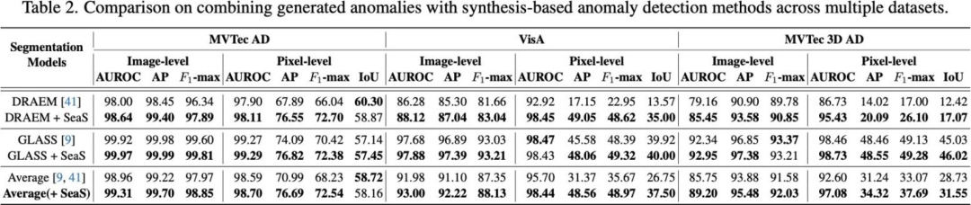 SeaS ⽣成的数据能有效赋能下游异常检测任务: