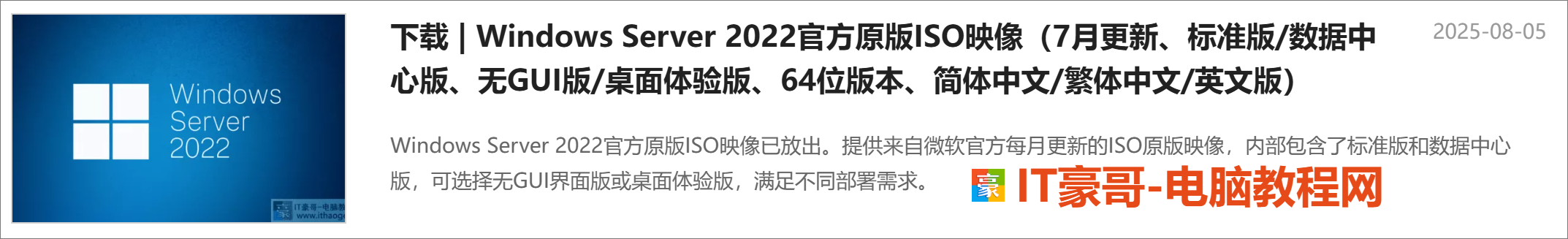 ✅ 从【IT豪哥-电脑教程网】下载系统映像:网页搜索“IT豪哥-电脑教程网”,进入“原版系统下载”栏目,再进入对应系统下载页面即可。