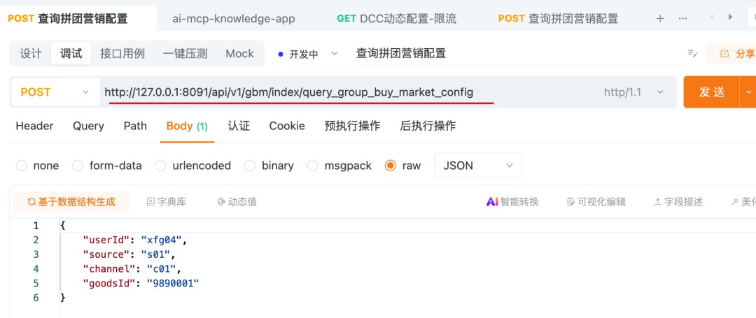 25-06-08.08:05:08.445 [http-nio-8091-exec-2] INFO EndNode -b601d8d5-ff62-4adb-8260-16d8b6af53ef 拼团商品查询试算服务-EndNode userId:xfg04 requestParameter:{"channel":"c01","goodsId":"9890001","source":"s01","userId":"xfg04"}