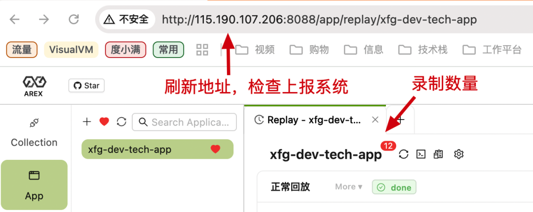 执行配置:-Xms512m -Xmx1024m -javaagent:./lib/arex-agent.jar -Darex.service.name=xfg-dev-tech-app -Darex.storage.service.host=115.190.107.206:8093 -jar ../../xfg-dev-tech-app/target/xfg-dev-tech-app.jar