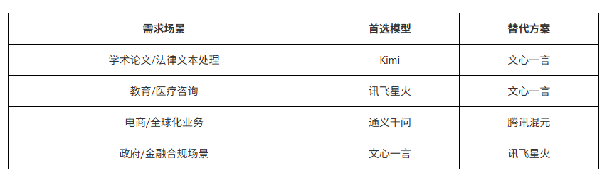 - 应用适配:帮助用户选择场景,例如金融领域需高可控性(赤兔大模型的话术生成)、医疗领域需数据隐私保障(端侧模型如蓝心)。