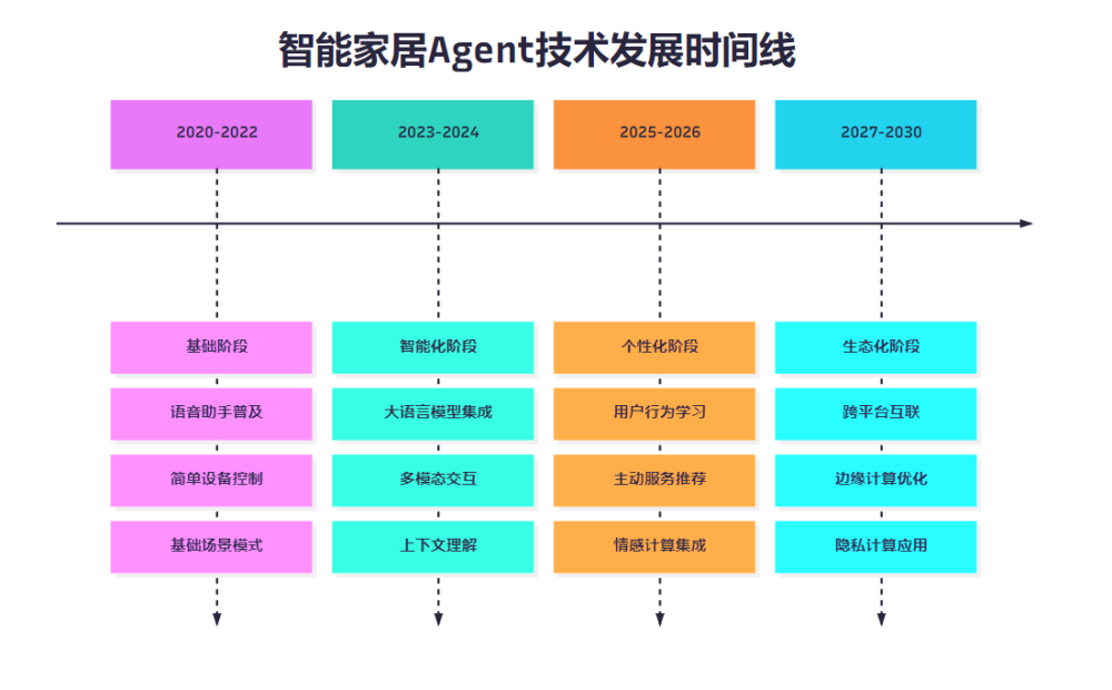 图5:智能家居Agent技术发展时间线 - 展示了从基础控制到智能生态的演进路径
