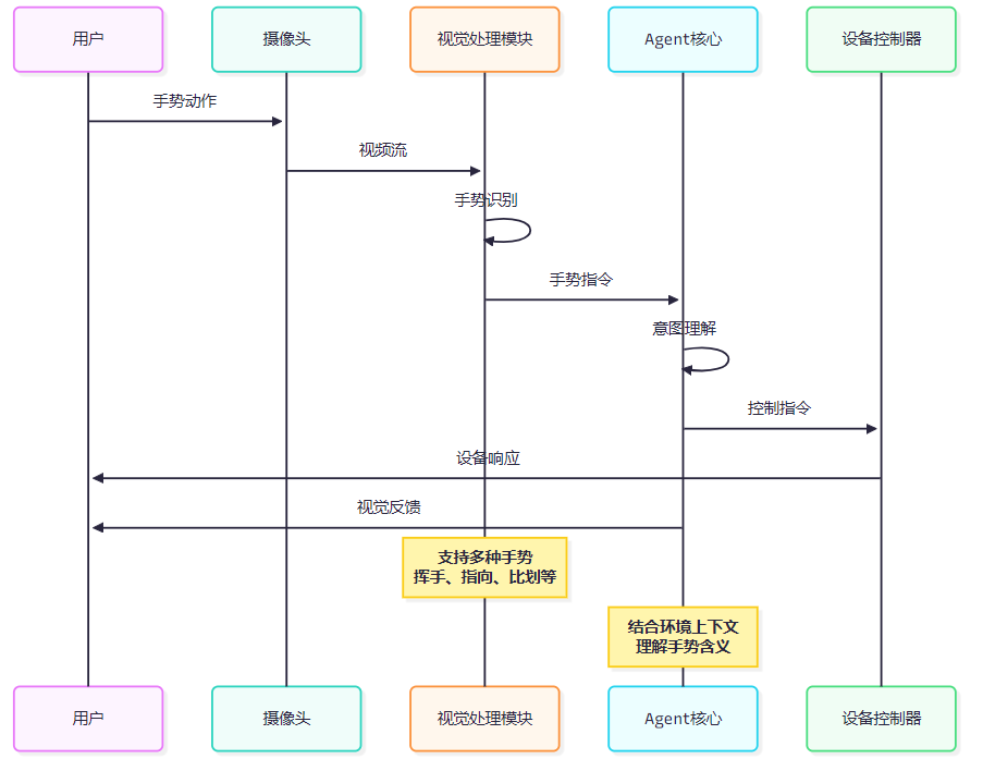 图2:视觉交互时序图 - 展示了从手势识别到设备控制的完整交互流程