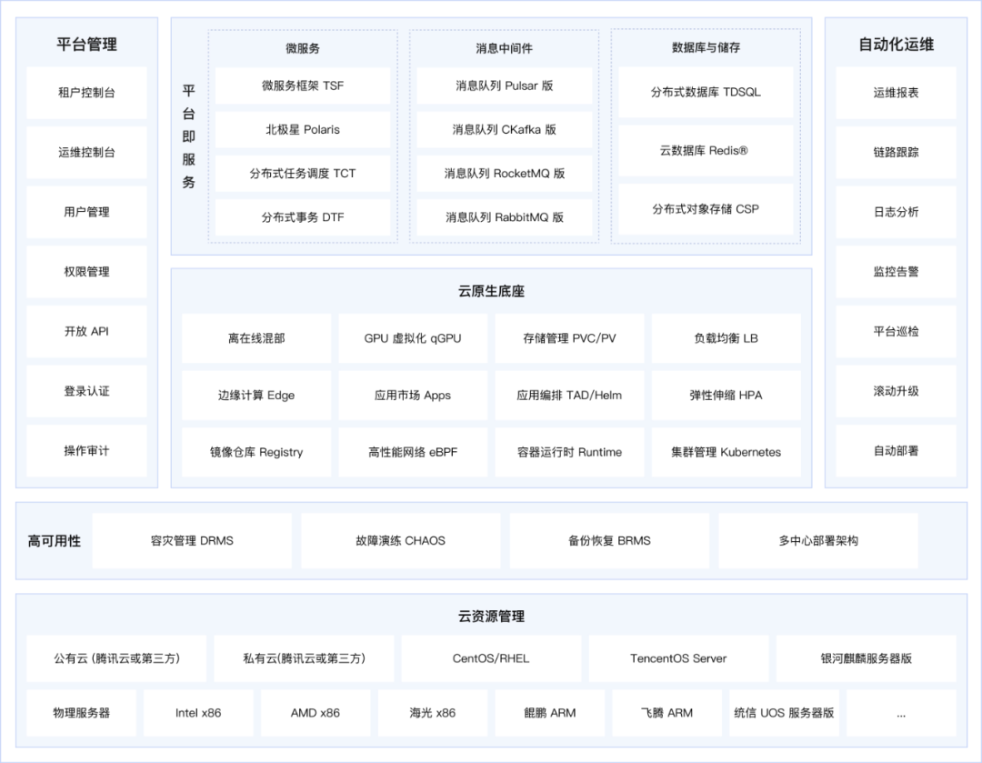 TCS 是由容器、微服务和消息队列等产品组合而成的云原生PaaS平台解决方案,可为企业云原生架构转型提供一站式支持。
