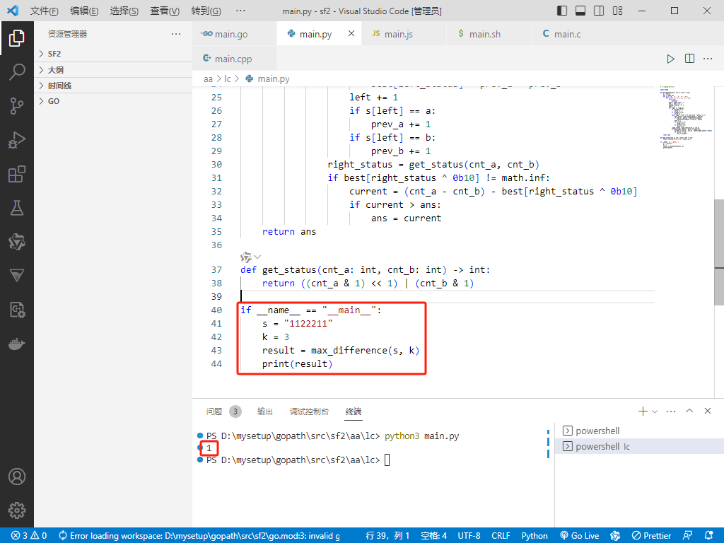 2025-08-14:奇偶频次间的最大差值Ⅱ。用go语言,给你一个字符串 s 和一个整数 k。请从 s 中选取任意一个长度不少于 k 的连续片段(即子串),满足存在两个字符 a、b 使得: