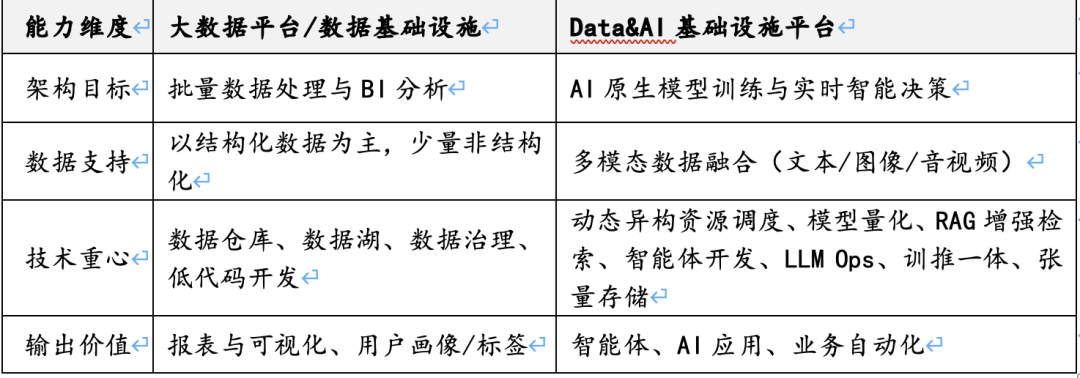 新一代 Data&AI 数据基础设施与传统大数据平台 / 数据基础设施的代际差异