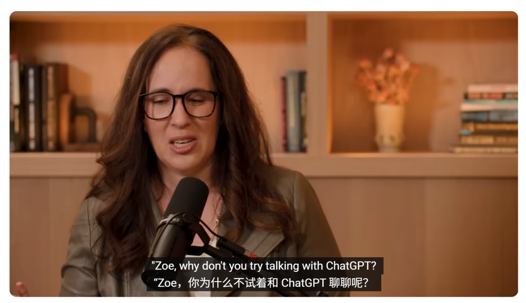 她把手机递给她,说:「Zoe,你试着跟ChatGPT聊聊天吧。」