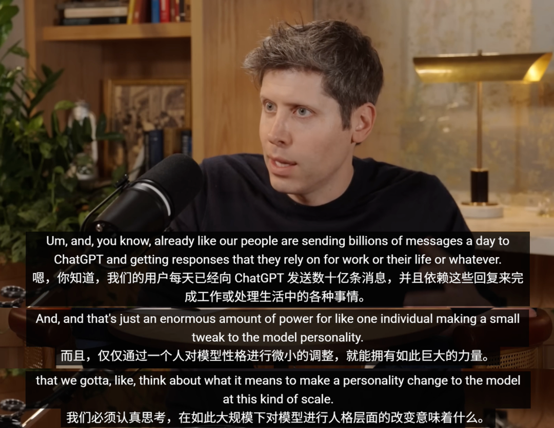 而一个研究员对模型「说话方式/人格」的一个小改动,就可能影响到海量对话。这是一种极其巨大的权力。