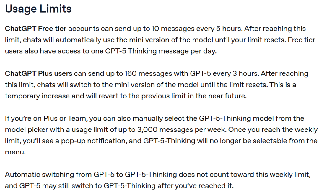 Thinking模式的上下文窗口高达196k token,付费用户每周最多可以发送3000条消息,达到上限后,可以继续使用Thinking mini版。