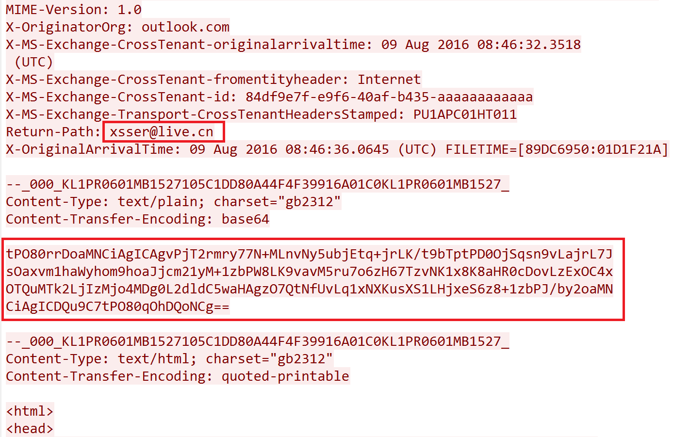 解码后,发现疑似钓鱼邮件,确认黑客使用的邮箱是:xsser@live.cn