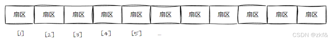 磁盘就是⼀个三维数组,我们把它看待成为⼀个"⼀维数组",数组下标就是LBA,每个元素都是扇