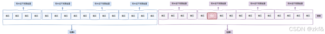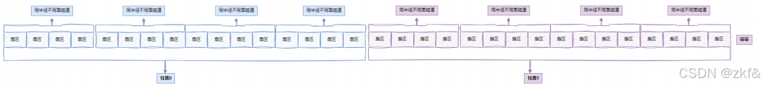 柱⾯是⼀个逻辑上的概念,其实就是每⼀⾯上,相同半径的磁道逻辑上构成柱⾯。