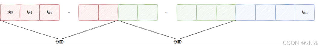 是”块”。“块”⼜是硬盘的每个分区下的结构,难道“块”是随意的在分区上排布的吗?那要怎
