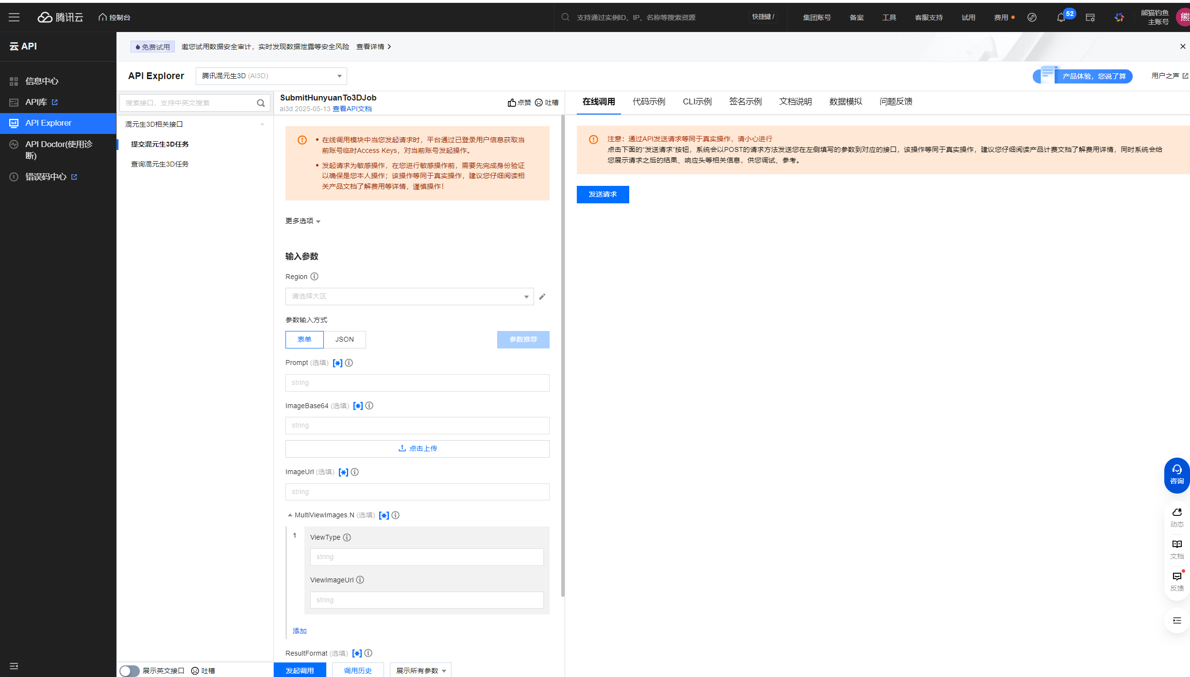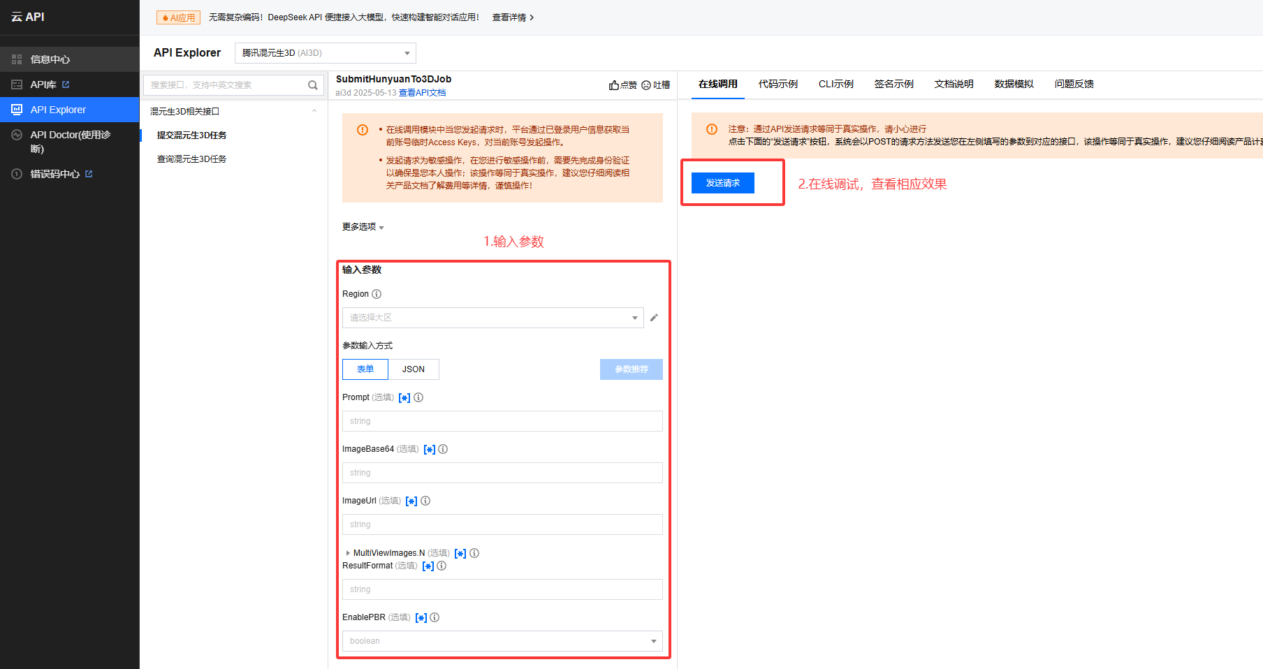 您可使用 API Explorer 在线调试,输入相应参数后在线调用查看响应结果。
